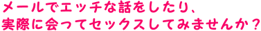 ![]() ![]() ![]() 登録・利用料は全て無料です。メル友・セックスフレンドをお探しの方は是非ご利用下さい。 真剣なお付き合いを求める方からメル友や実際に会ってエッチがしたいという 女性会員が多数いらっしゃいます。最近は20〜25歳のOLが急増中です。 登録は簡単でフリーメールでもご利用になれます。 退会も自由にでき、セキュリティも万全です。是非お試し下さい。 |